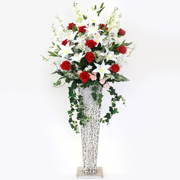 ブランド品専門 のシルクフラワー カサブランカとバラとデルフィニウムの豪華なジャンボスタンド付きアレンジ 花束 アレンジメント シルクフラワー 造花 アートフラワー 造花 ホワイト Ym2 1806 2277 シルクフラワーの山久ヤフー店 Ct触媒 花束 アレンジメント